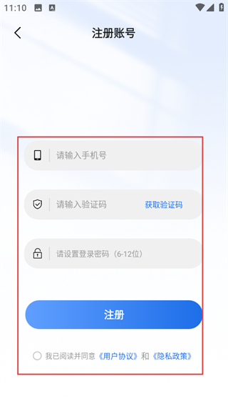 4、在注册账号页面,输入信息,同意协议后,点击注册完成账号注册。
