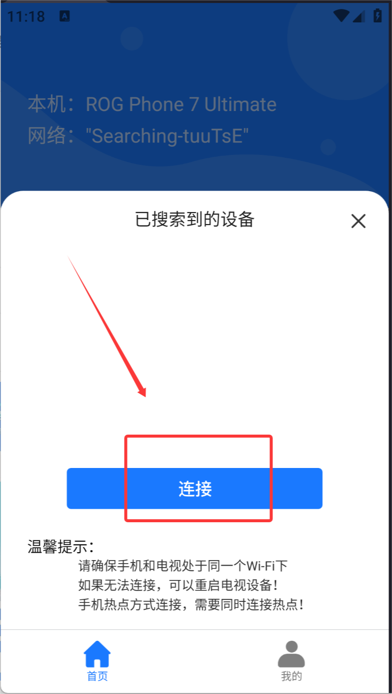 2、在投屏应用中点击“连接投屏”按钮,开始投屏操作。