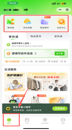 1、点击首页的“寄快递”选项,开始快递寄送服务流程。