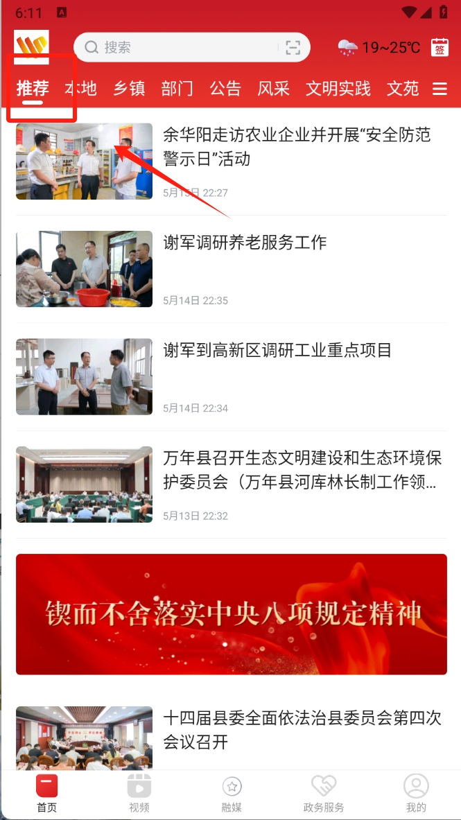 1、首先,在“融媒”应用中,点击首页的“推荐”选项,浏览最新的新闻和动态,获取您感兴趣的信息内容。