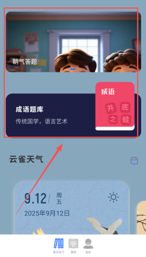 1、首先,下载并安装朝气答题,注册账户后即可进入首页,浏览各类题库,选择最感兴趣的内容进行挑战。