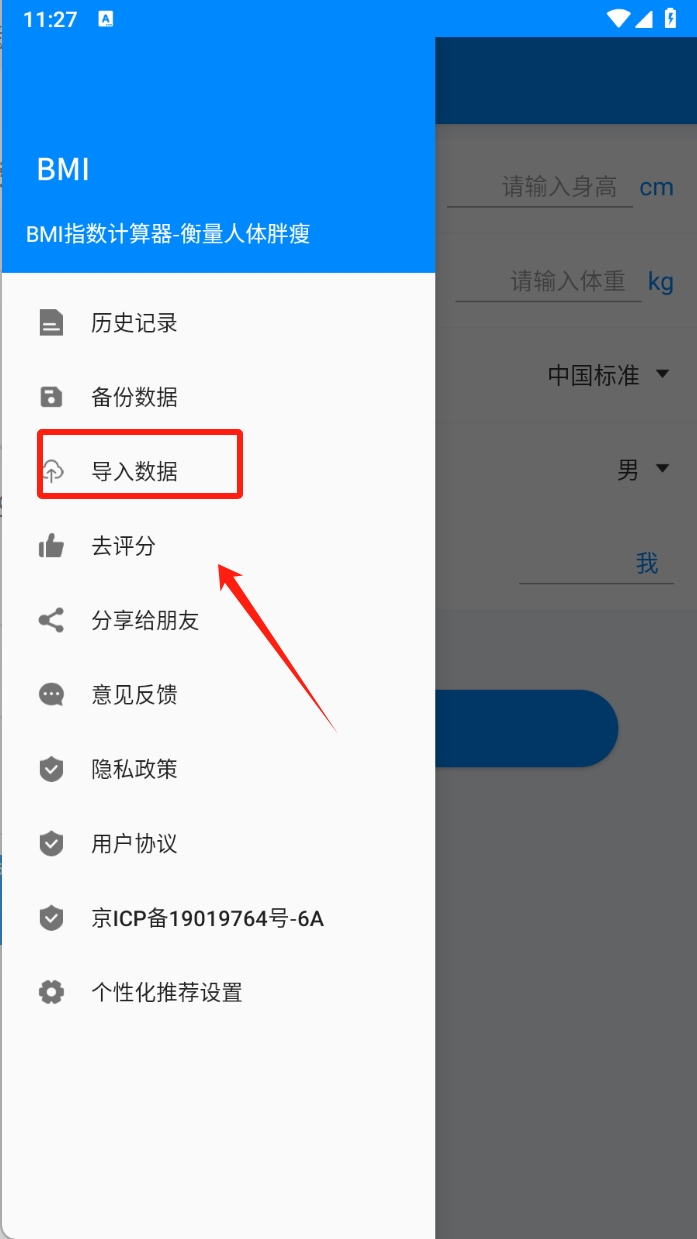 1、导入数据到BMI计算器 。在软件侧边栏中找到并点击导入数据,选择需要导入的BMI相关数据文件。