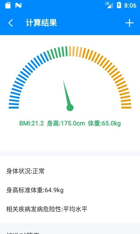 1、基础计算功能快速响应,输入身高体重后0.5秒内即可显示BMI数值和对应的健康状态评估。