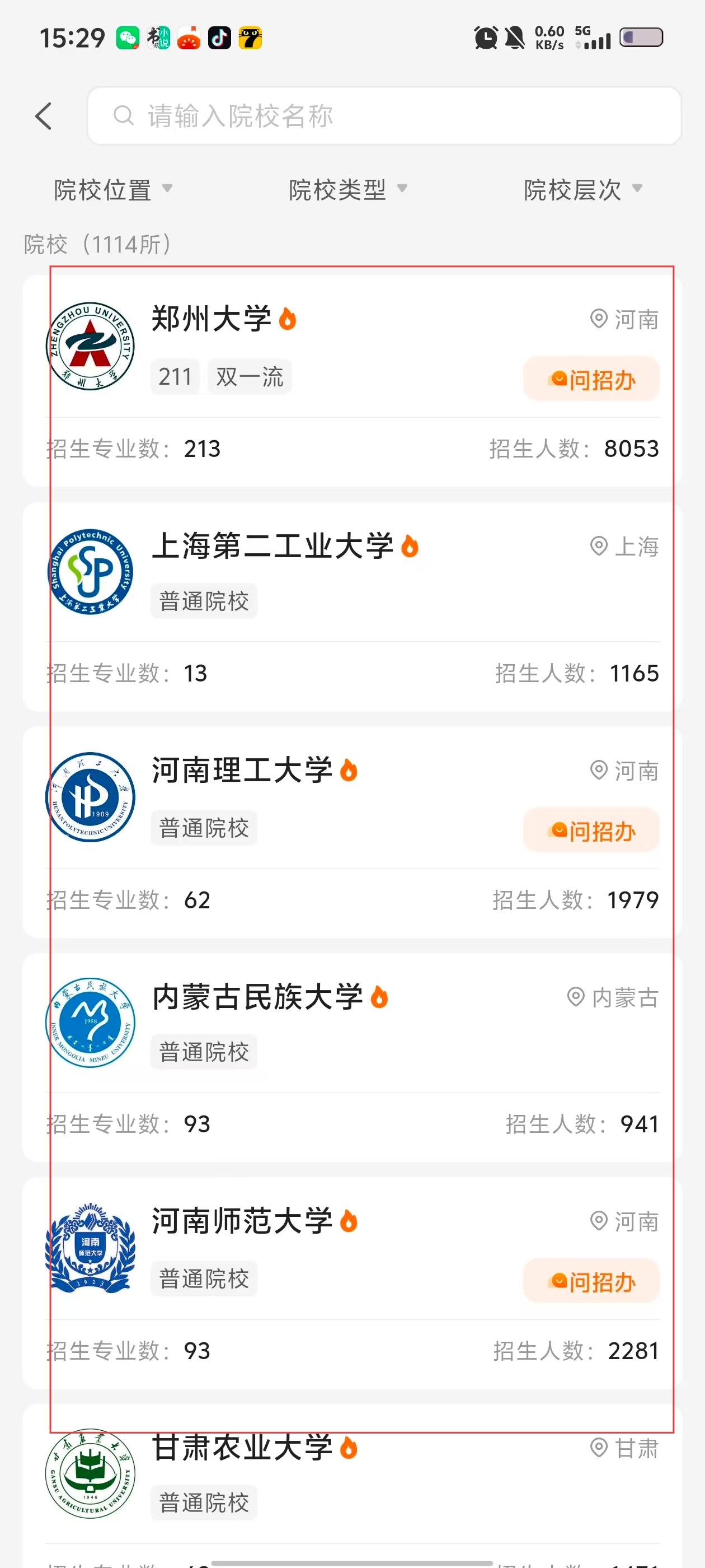 3、查看院校详情时可重点关注【院校层次】如【211-双一流】及【招生人数】等关键数据,还可通过【问招办】功能直接咨询。