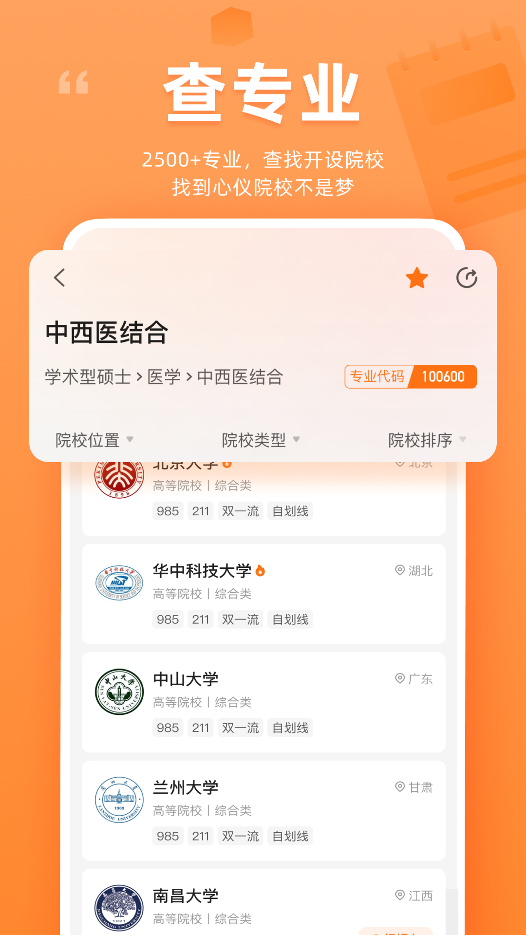 2、在首页充分利用【查大学】和【查专业】功能,快速筛选目标院校信息,点击【查大学】进入查大学页面。