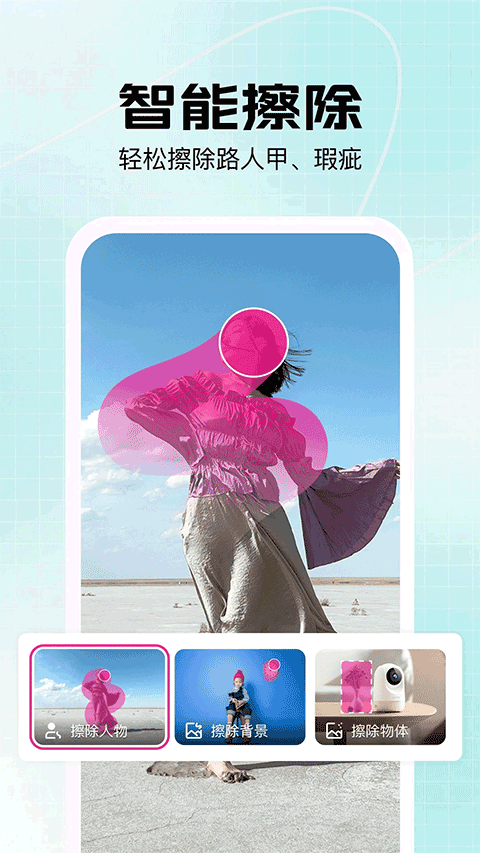 2、精准修图功能 提供可调节的智能笔刷工具,支持对照片中多余元素进行精细化处理,无论是杂物清除还是瑕疵修复都能轻松完成。