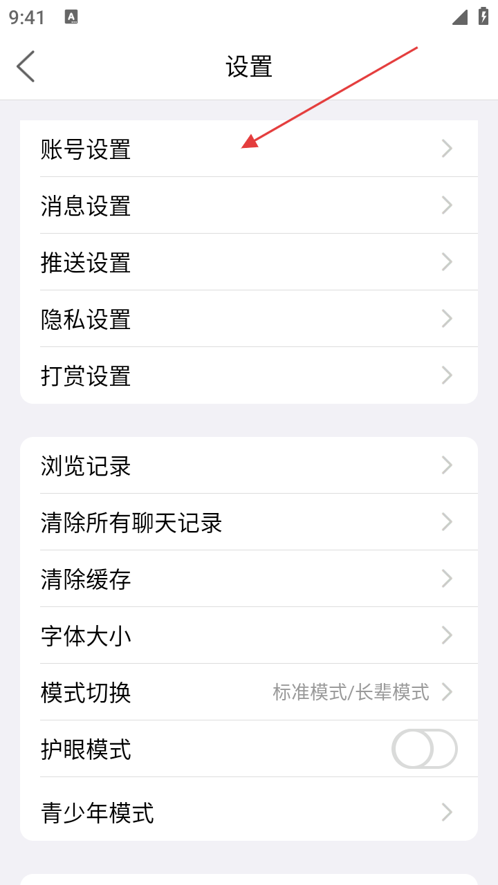 3、在设置页点击【账号设置】,进入账号密码登录流程。