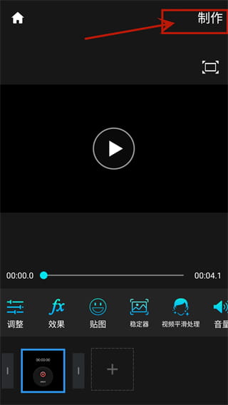 5、编辑视频完毕再在视频的编辑界面添加文字啊滤镜等效果即可,然后点击APP右上角的制作按钮,接着点击hd,点击开始制作软件就会导出视频。如果要设置更多的参数则点击更多的选项,这里提供了保存的位置,以及帧率比特率三个参数设置。