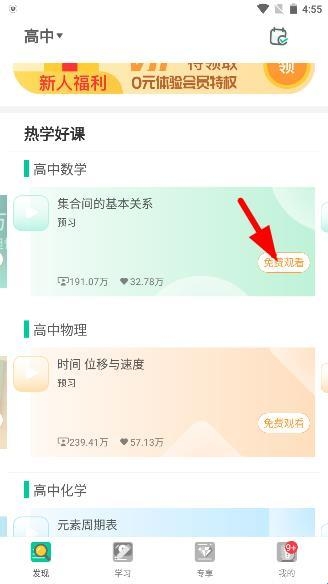 2、物理大师高中版打开软件后点击免费观看