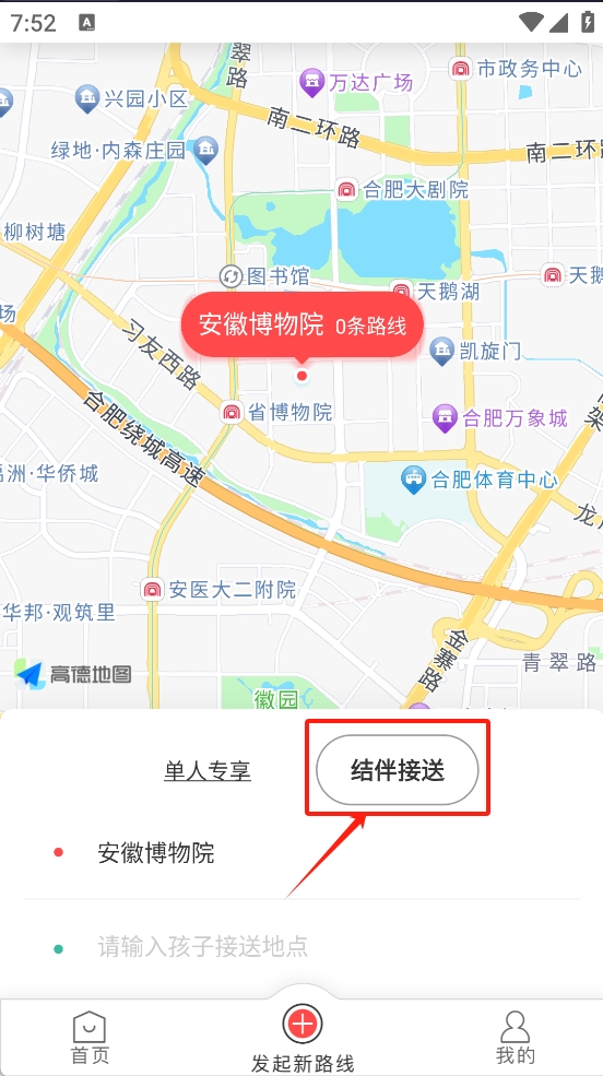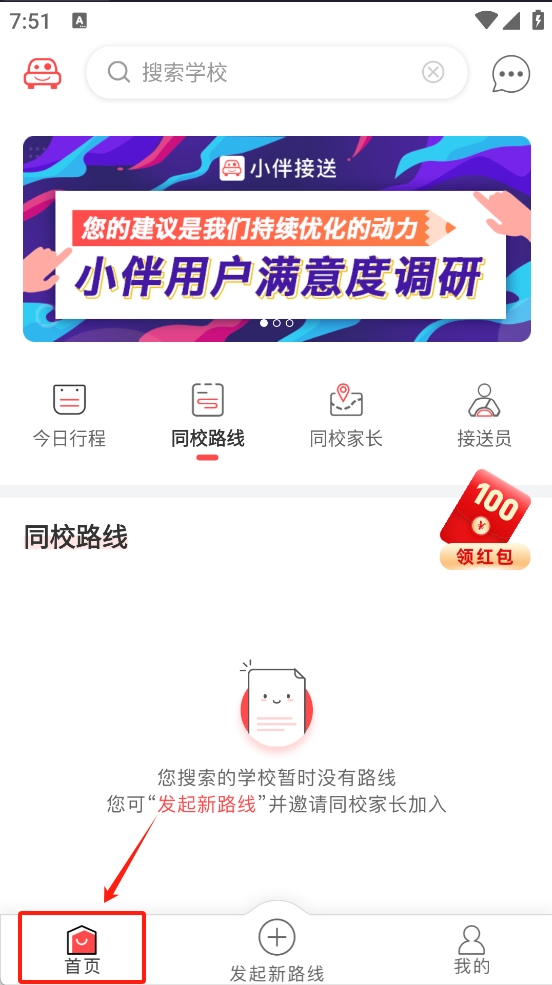 1、点击“首页”,查看同校路线和发起新路线的选项。