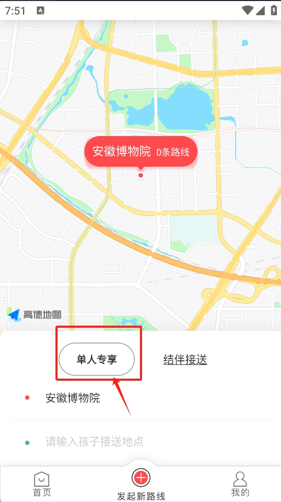 2、在地图上选择“单人专享”或“结伴接送”服务。