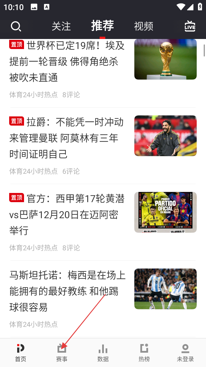 1、在pp体育APP首页,点击底部的【赛事】选项,进入赛事页面。