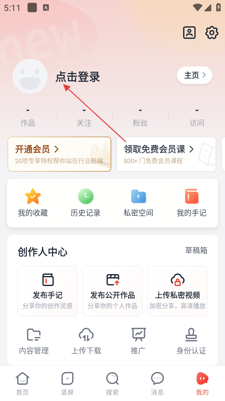 2、进入“我的”页面后,点击【点击登录】选项,进入登录界面。