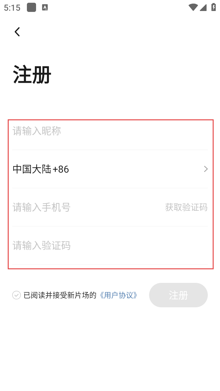 4、在注册页面,依次输入昵称、手机号,获取并输入验证码,勾选协议后点击【注册】完成操作。