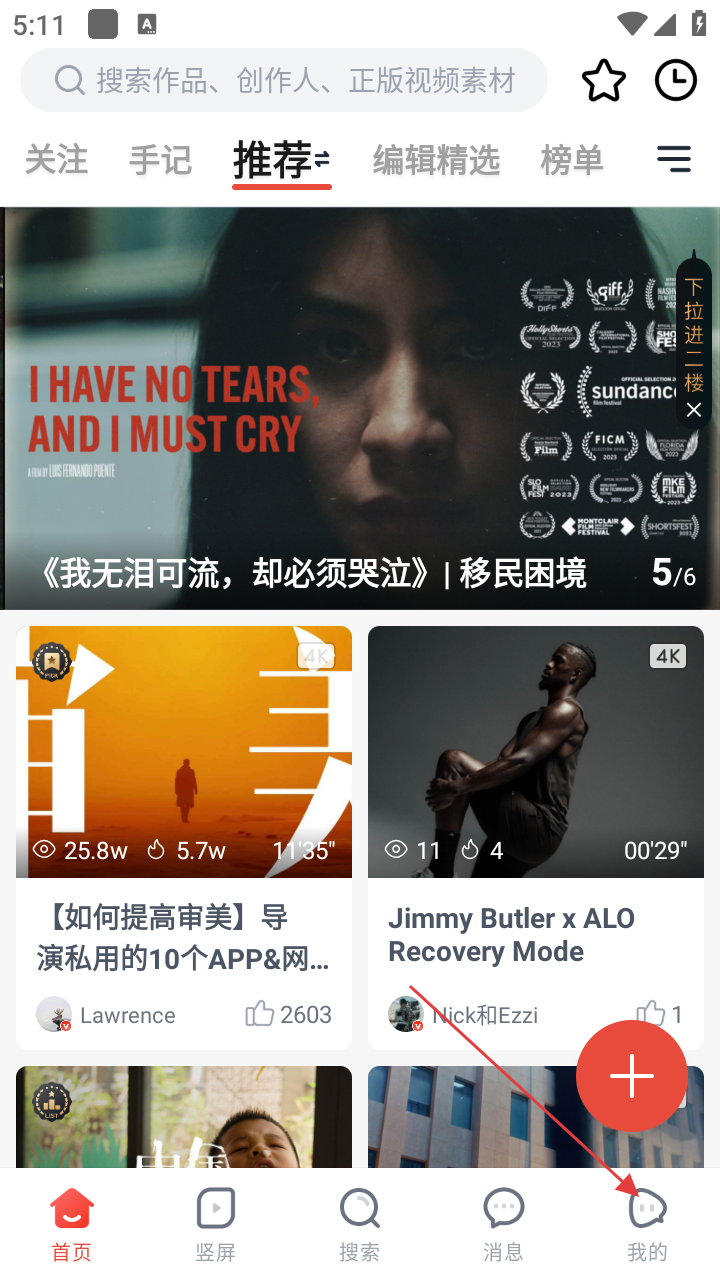 1、在新片场首页,点击右下角【我的】选项,进入个人相关页面。