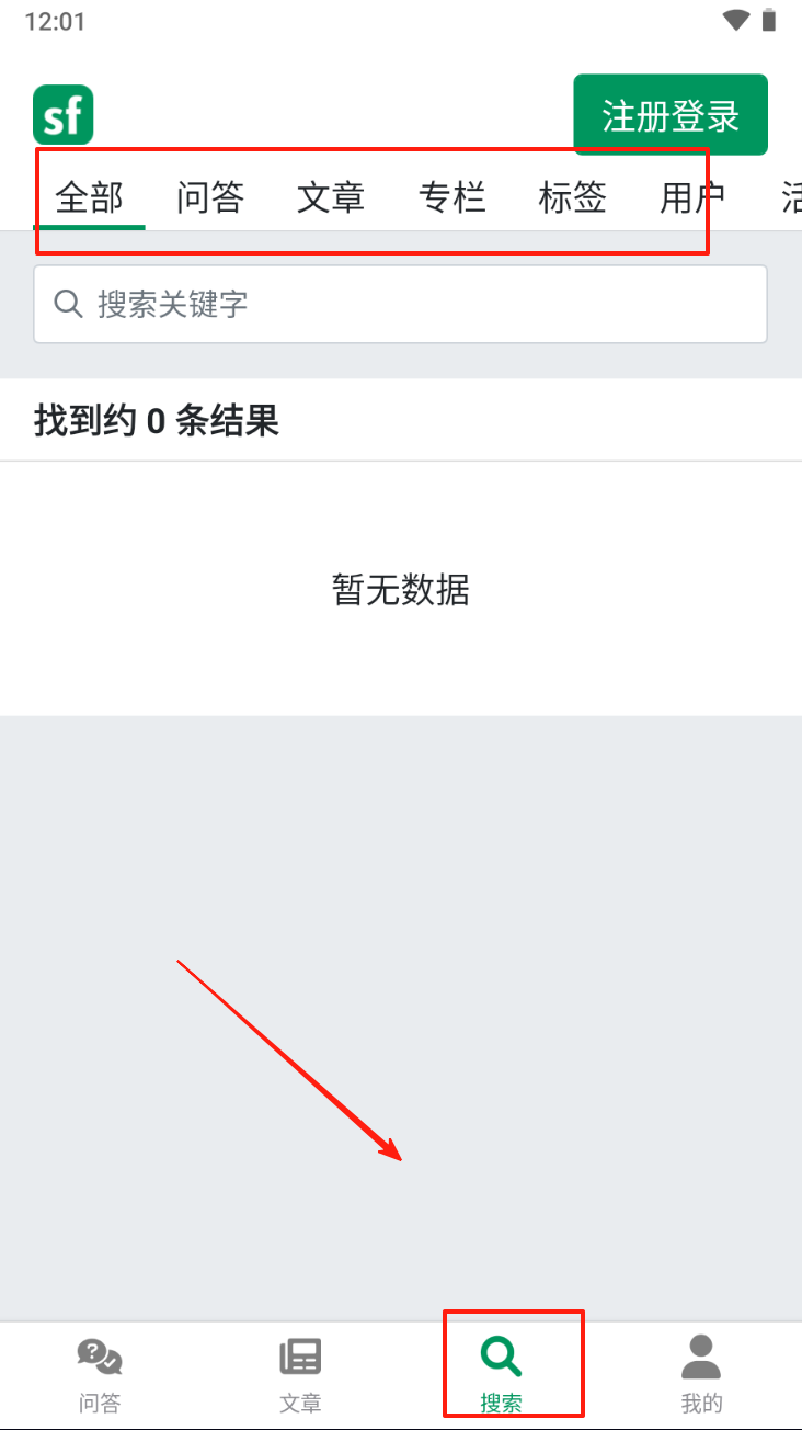 3、点击“搜索”进入搜索页面,搜索关键词查找相关内容。