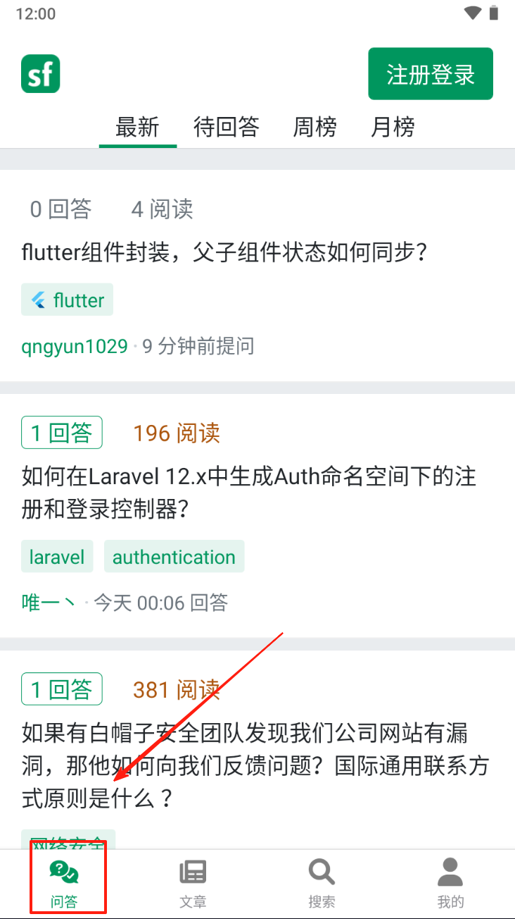1、点击“问答”进入问答页面,查看最新问题和待回答问题。