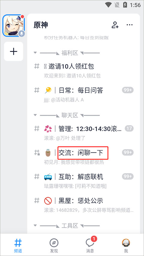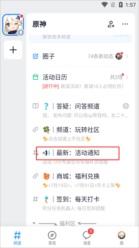 1、进入Fanbook安卓最新版,在频道出点击我想创建服务器