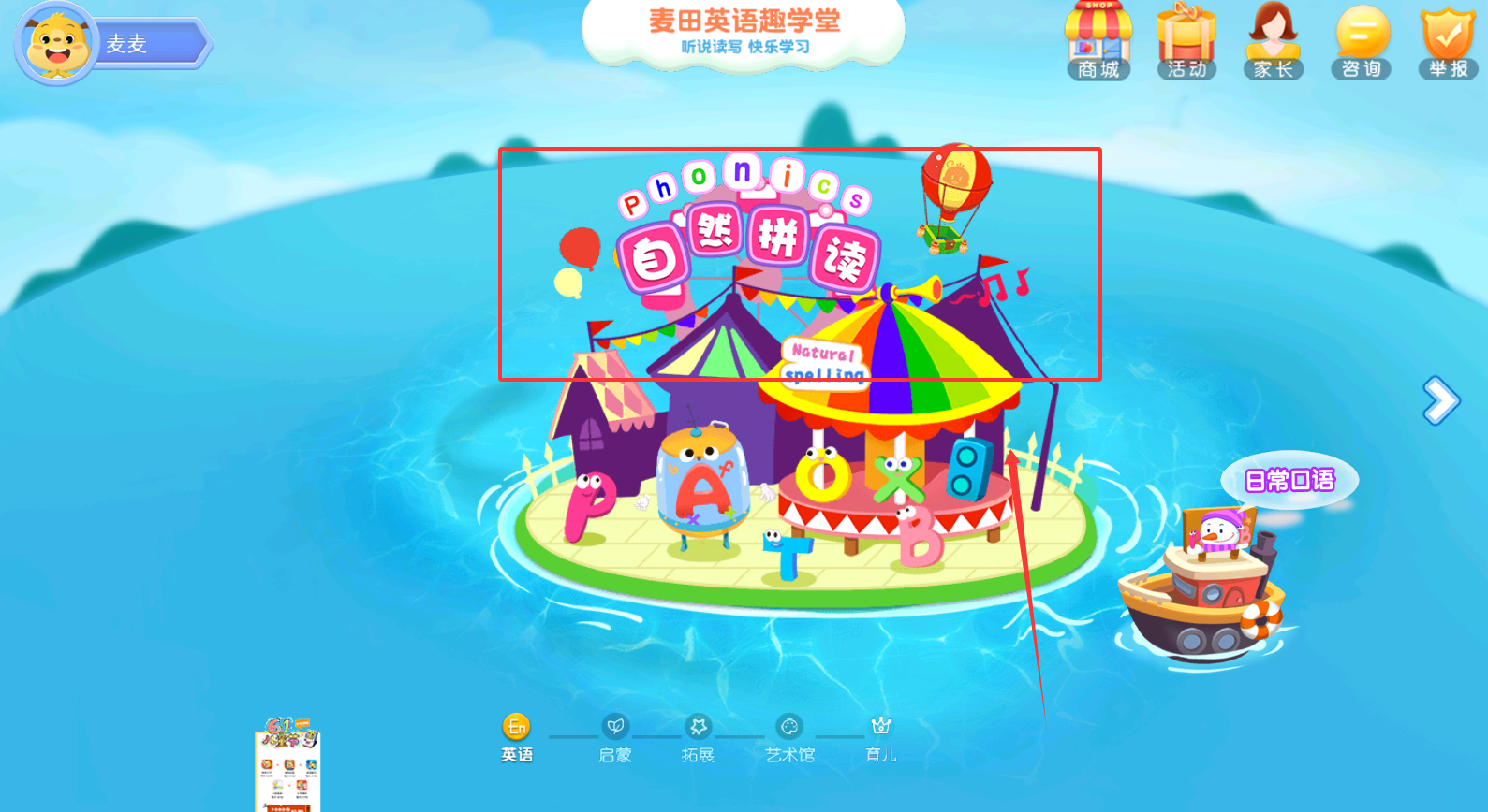 2、接着,选择不同的学习模块,孩子们可以通过观看动画和跟读音频来学习拼读,发音,自由探索知识的乐趣。