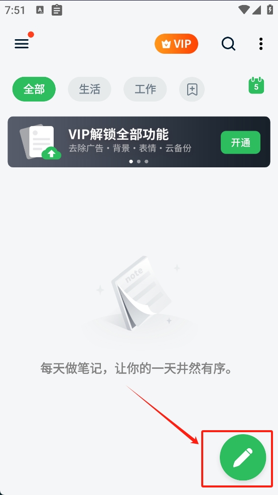 1、首先,点击首页底部的“铅笔”图标,开始创建新笔记。
