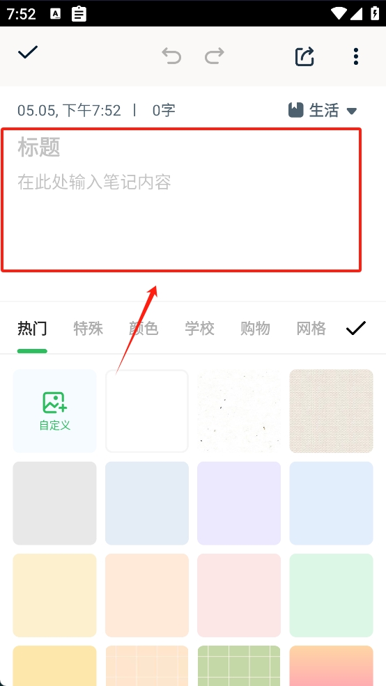 4、最后,在标题栏输入笔记标题,并在下方编辑区输入笔记内容。
