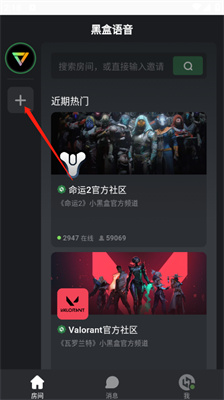 - 以游戏分类的公共频道,像《和平精英》《第五人格》之类的,支持语音和文字混合交流。