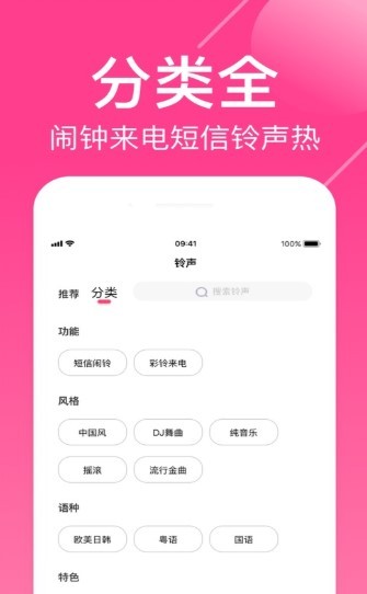 1. 海量铃声:提供丰富的音乐铃声资源,满足用户的多样化需求。