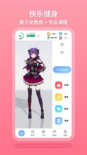3.在元气健身官网版中,用户可以选择自己喜欢的美少女角色作为自己的虚拟形象,并跟随她们一起完成各种健身动作和训练计划。