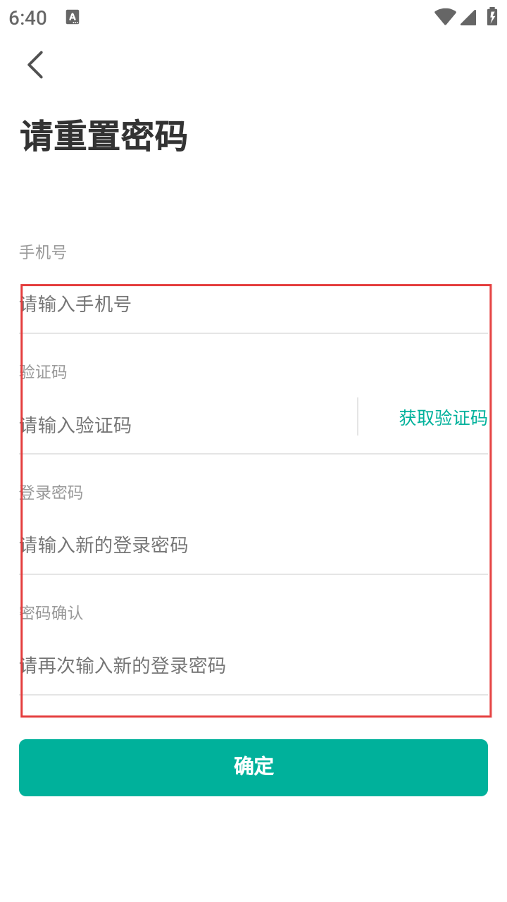 2、在重置密码页,依次输入【手机号】,点击【获取验证码】,填入收到的【验证码】,设置【新登录密码】并【确认密码】。