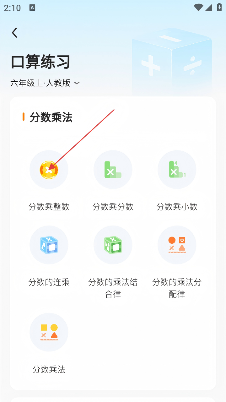 3、进入口算练习页面后,选择对应的知识点,如“分数乘整数”。