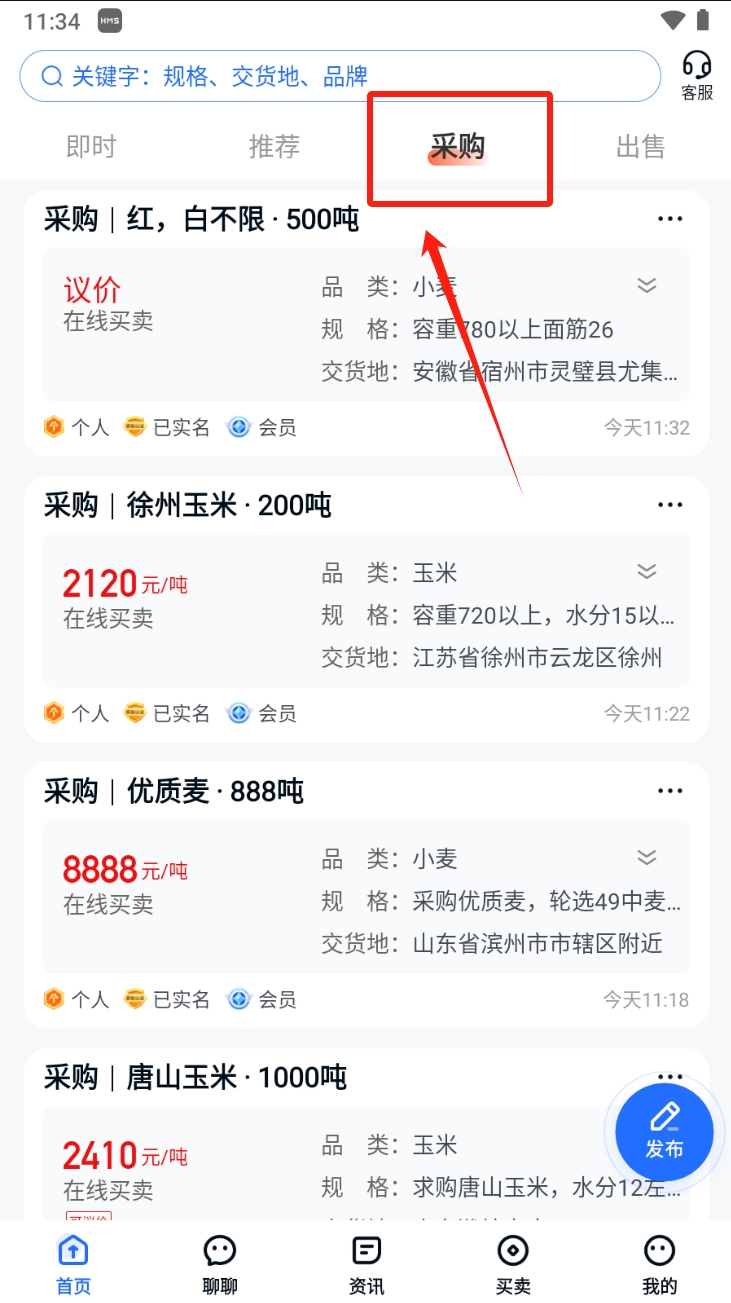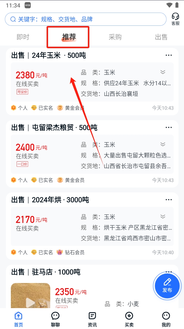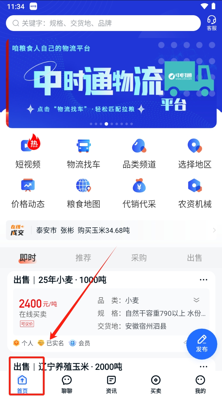 1、首先,浏览出售信息。在中时通物流平台首页,查看当前出售的农产品信息,包括价格、规格和交货地等。
