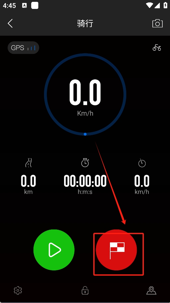 4、点击底部红色停止按钮,结束并保存您的骑行记录。