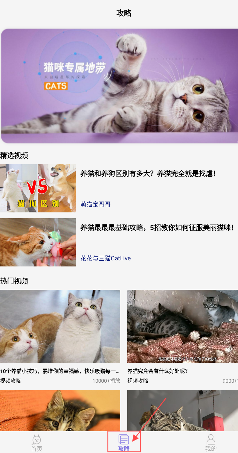 3、点击下方【攻略】还有萌宠视频可以观看。
