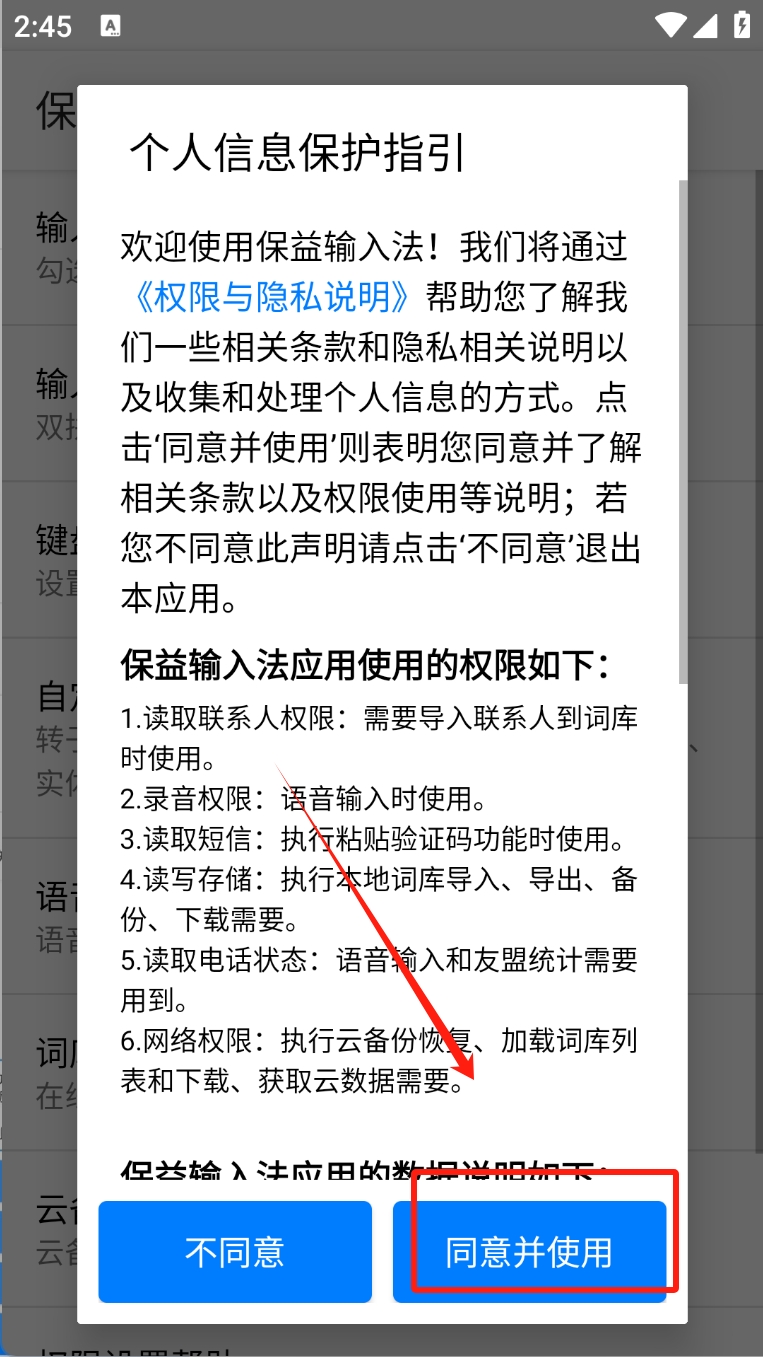 1、阅读并同意个人信息保护指引。点击“同意并使用”以继续。