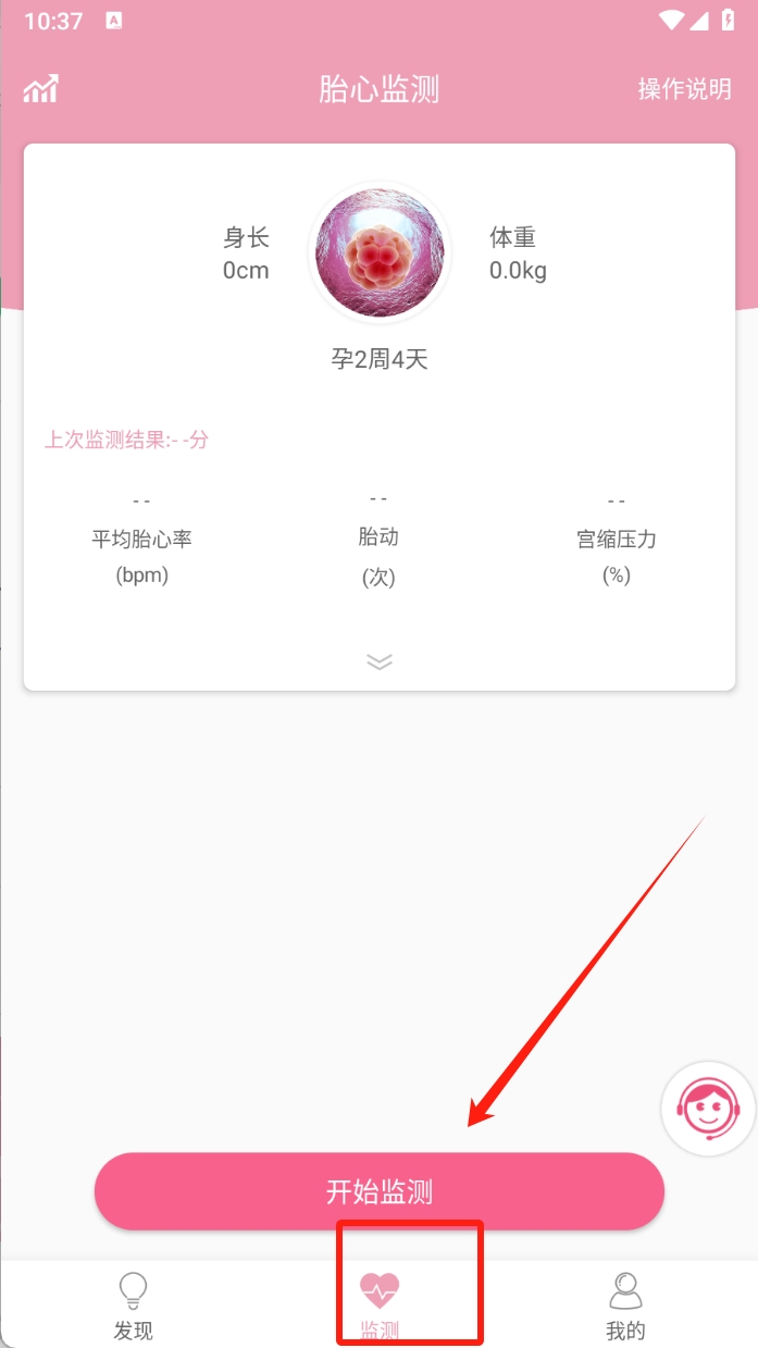 1、开始胎心监测 。在软件主界面点击开始监测按钮,进入胎心监测功能,准备进行胎儿心率监测。