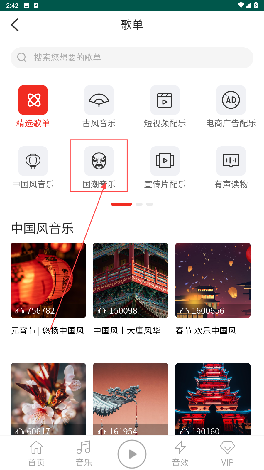 2、选择喜欢的曲风的歌单点击。