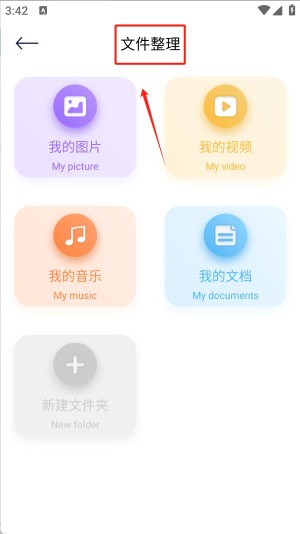 2 、接着,点击“文件整理”选项,进入文件管理页面。在这里,你可以选择管理不同类型的文件,如“我的图片”、“我的视频”、“我的音乐”和“我的文档”。