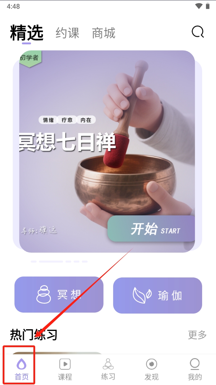 2、点击底部的“首页”图标,浏览推荐的热门练习。