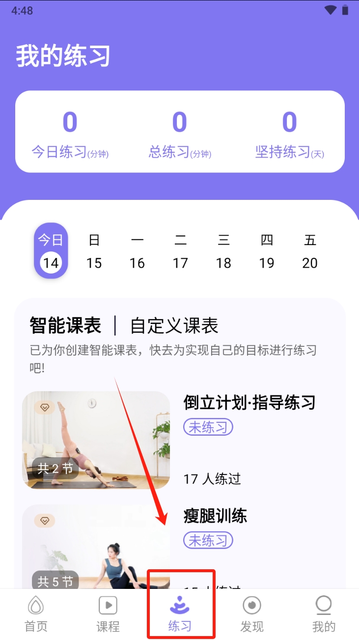 3、点击底部的“练习”图标,查看并选择适合的练习课程。