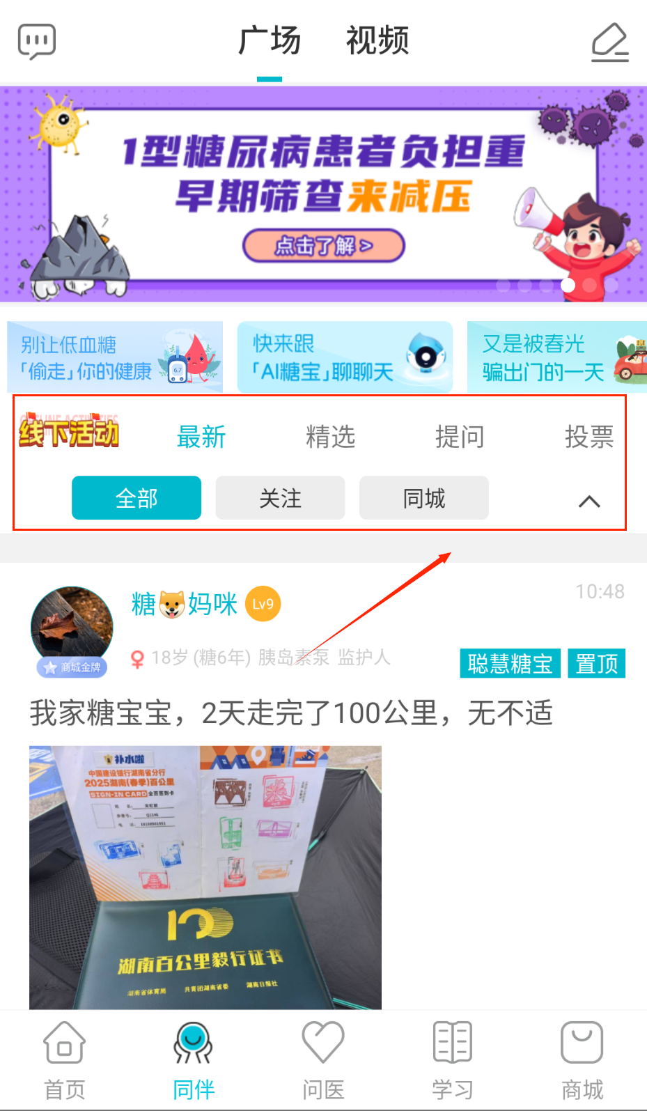 1、在首页点击“线下活动”或“课程”按钮,了解糖尿病相关信息和活动。