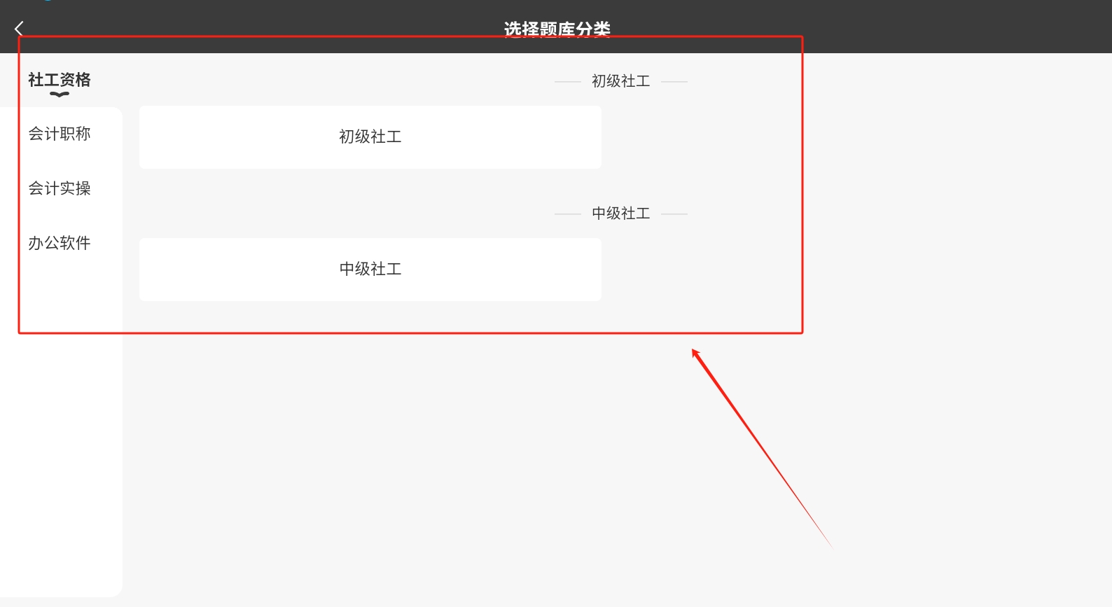 2、选择所需课程或考试类型,浏览丰富的题库和学习资料,以便快速找到适合自己的学习内容进行练习。