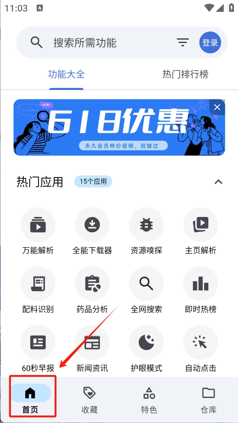 3、浏览功能大全:在首页查看热门应用和功能,点击所需功能进行使用。