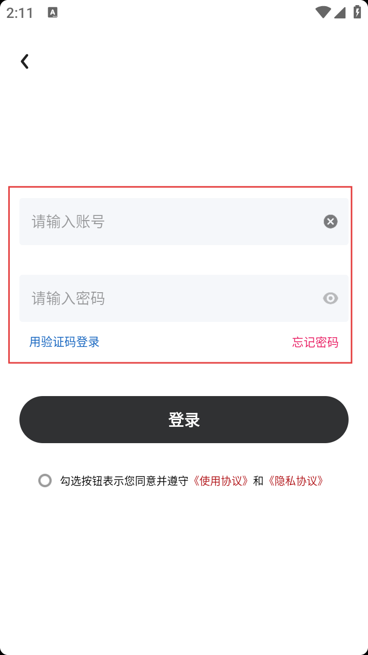 4、在登录页,填账号、密码,勾选协议,点【登录】完成操作。