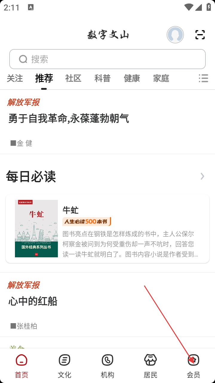 1、打开【数字文山】,点击底部【会员】,进入会员专属页。