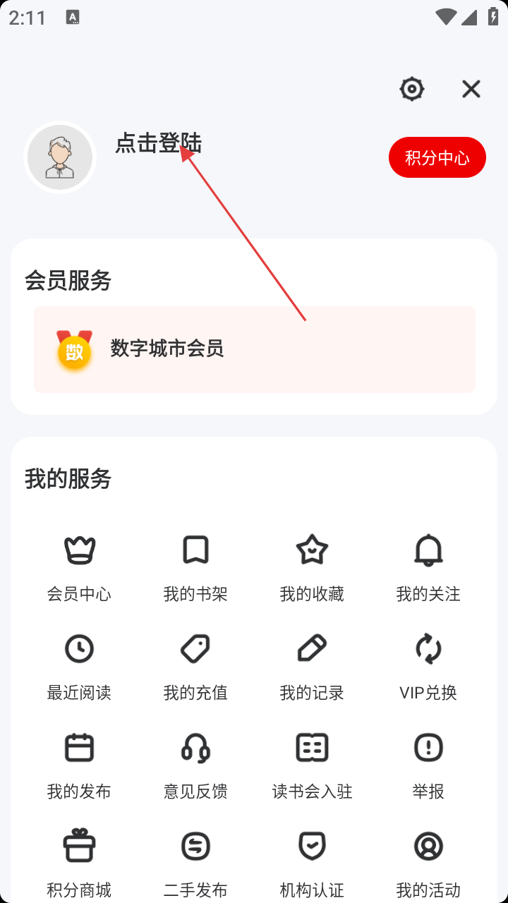 3、在个人服务页,点击【点击登陆】,进入账号登录流程。