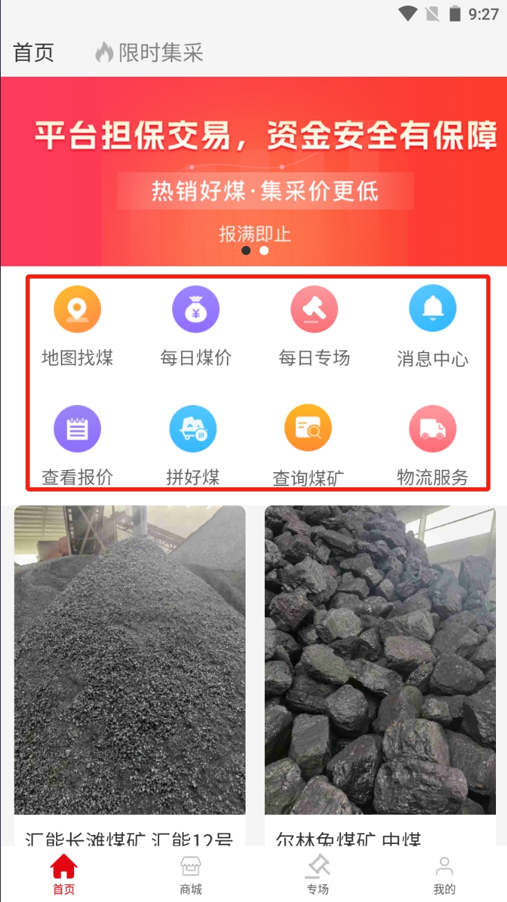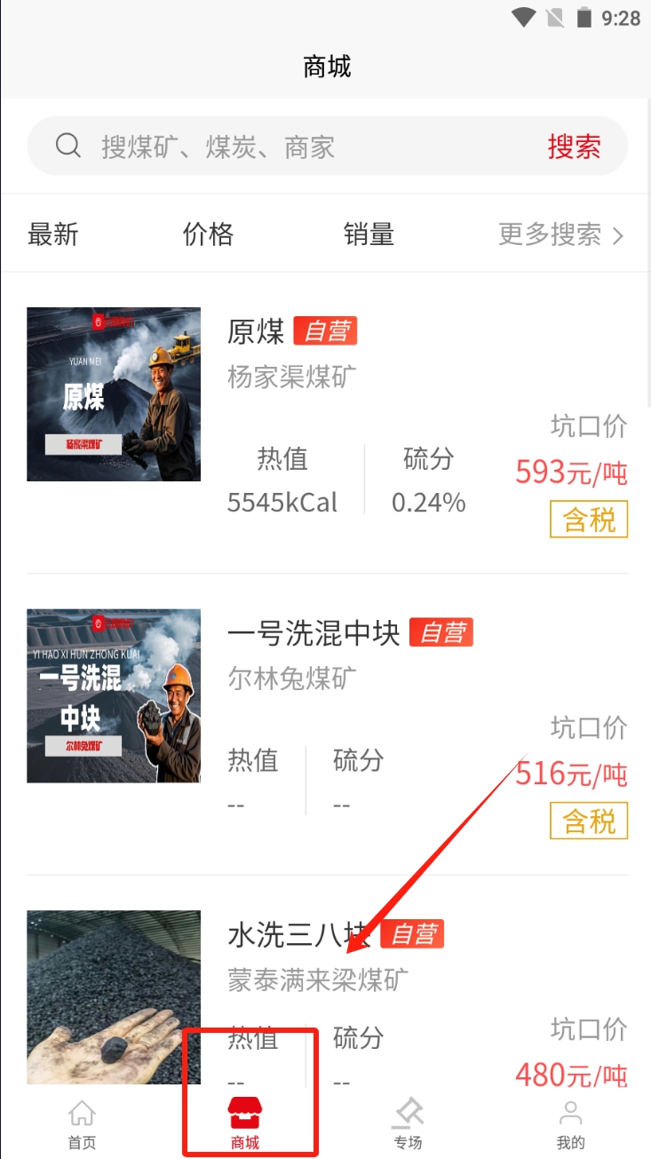3、在商城页面,通过搜索栏查找特定煤炭产品,查看详细信息并进行购买。