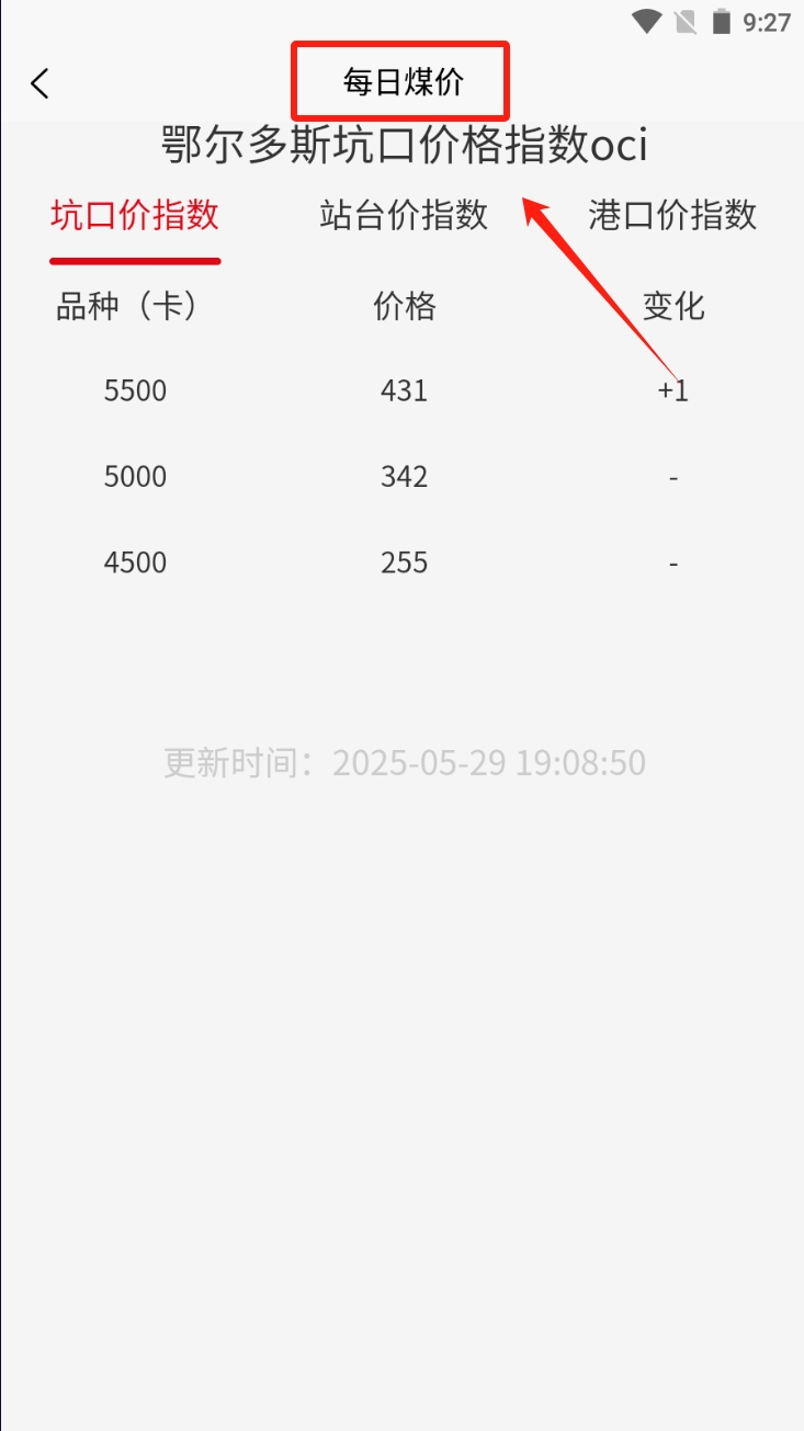 1、在首页点击“每日煤价”图标,查看最新的煤炭价格信息。