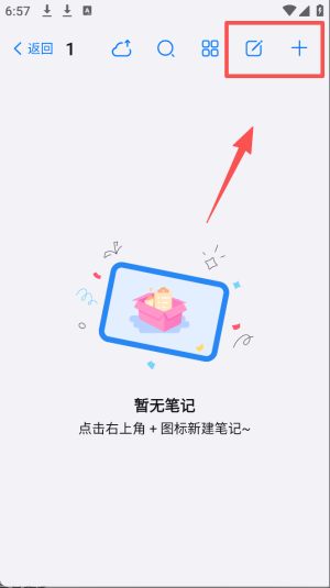3、在笔记页面,点击右上角的“+”图标。新建一条笔记开始记录信息。