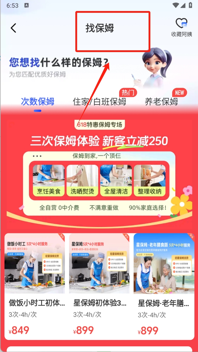 3、最后,在服务详情页面,点击“找保姆”或相应服务按钮,按照提示填写预约信息,完成支付后即可成功预约家政服务。