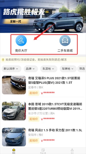 根据需求点击“竞价厅”(参与竞拍)或“二手车市场”(直接选购)。